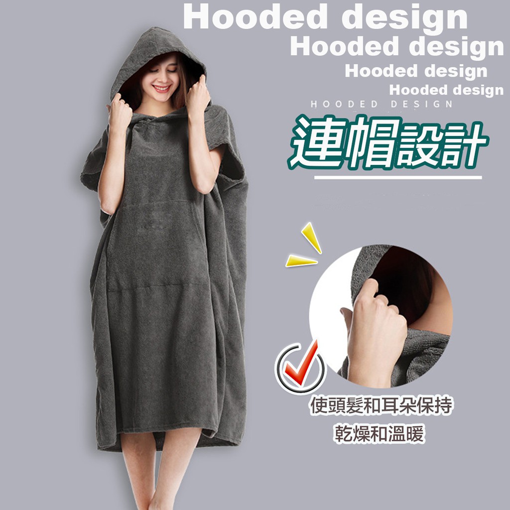 浴巾衣【台灣現貨 免運!保暖吸水 升級口袋款】吸水毛巾衣 連帽浴巾 沙灘巾 毛巾衣 連帽斗篷 沙灘衣 游泳浴巾