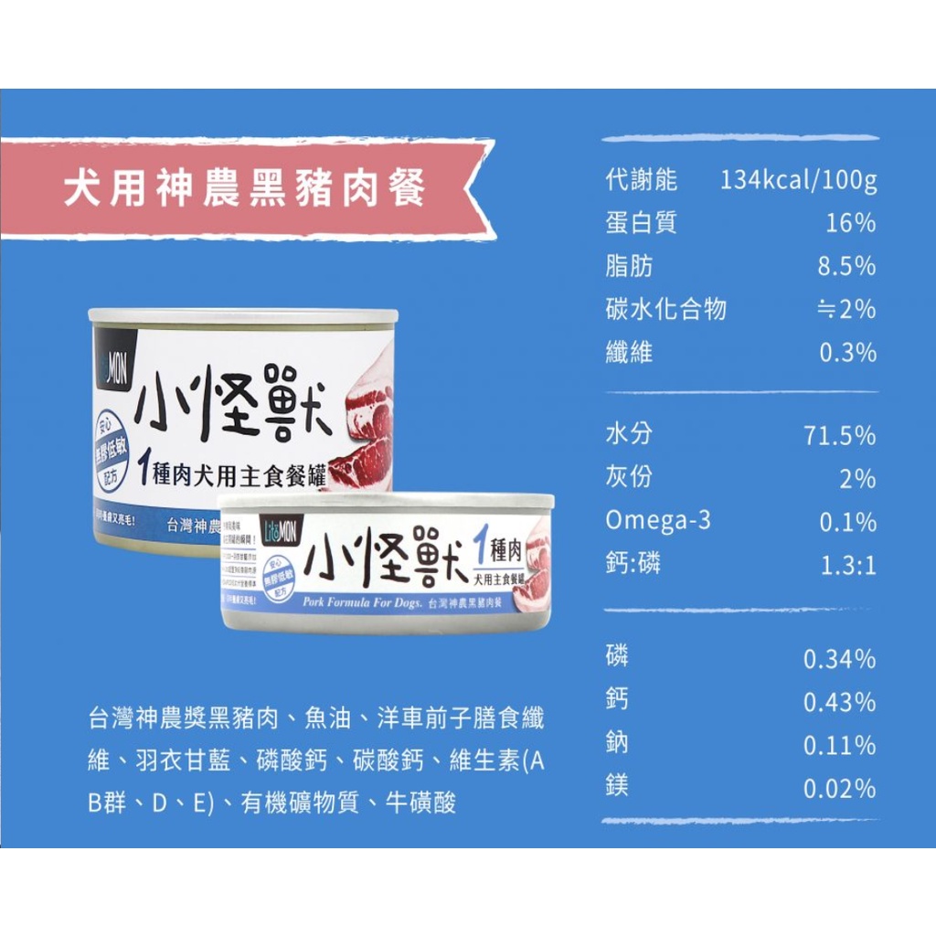 怪獸部落 LitoMon 犬族1 & 2種肉 無膠 主食罐 82 165g 狗罐 無膠 全口味 犬罐