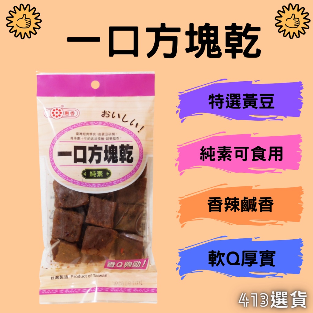 【413嚴選】一口方塊乾120g 小辣 特選黃豆 豆乾 豆干 素食可食 台灣製造 泡茶下酒 涮嘴零食 軟Q厚實 一口