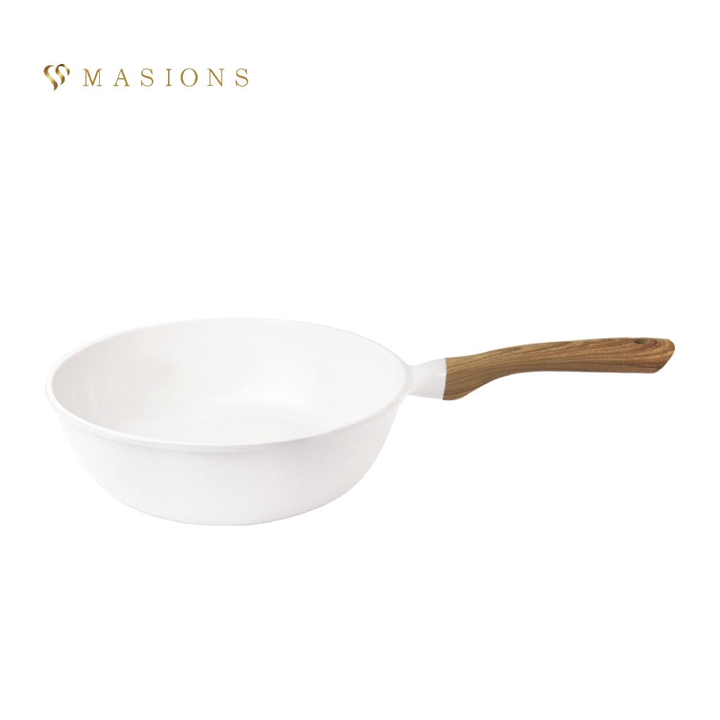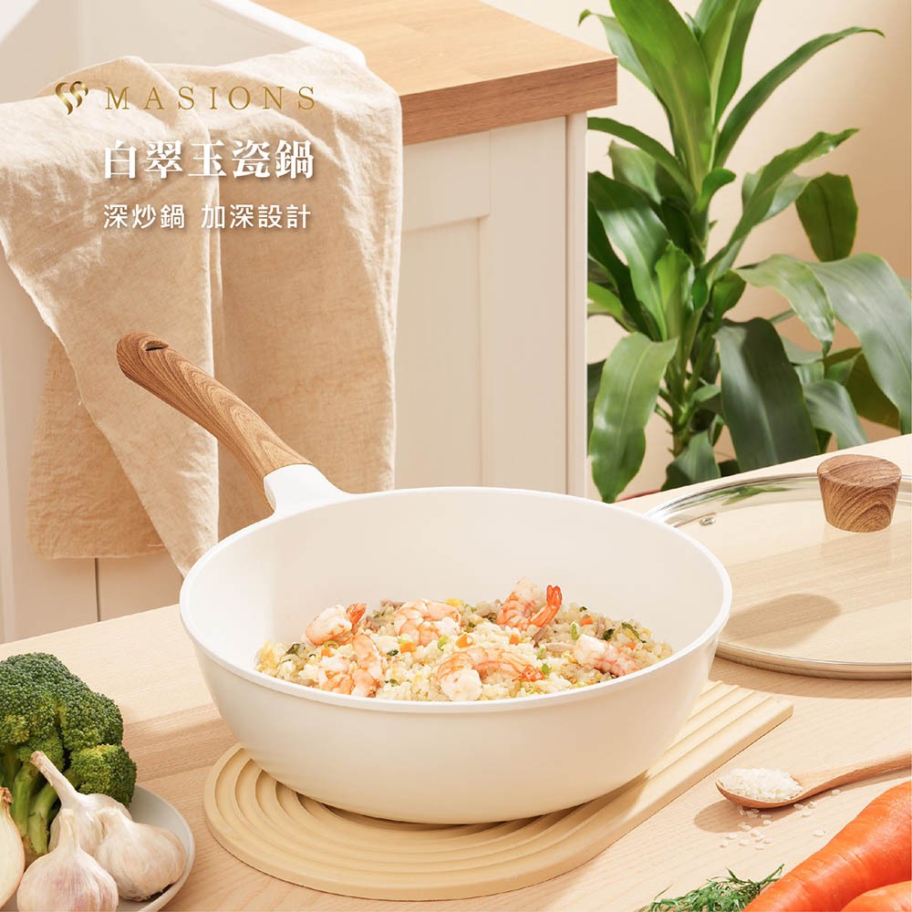 【MASIONS 美心】[福利品] 白翠玉瓷鍋 厚釜鑄造輕量IH不沾鍋 28cm (超取限購1支鍋具,超過請選宅配出貨)