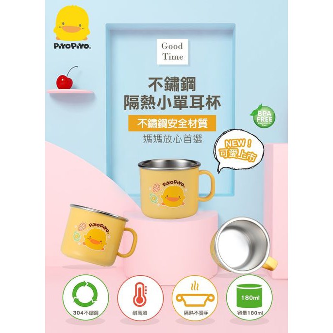 PiYo黃色小鴨-不鏽鋼隔熱小單耳杯180ml