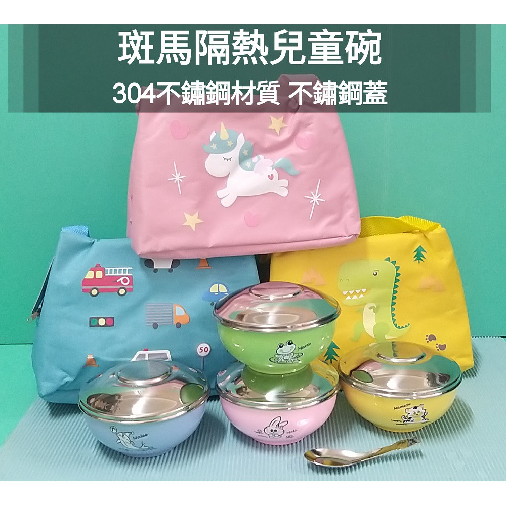 生活好物購 🌟現貨附發票🌟斑馬牌彩色隔熱兒童碗附蓋附湯匙 斑馬牌兒童碗 不鏽鋼兒童碗 三色碗 斑馬兒童碗 斑馬隔熱碗