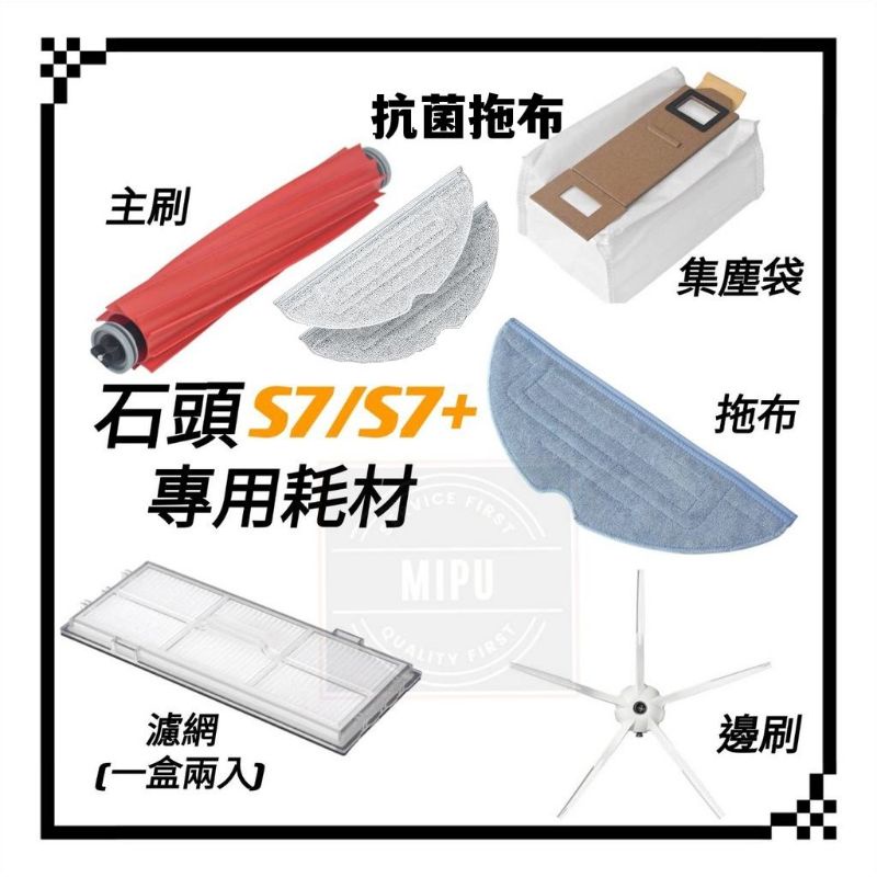 [高品質副廠] 石頭掃地機器人耗材 S7 S7+ G10 T7s Plus 邊刷 主刷 拖布 抗菌 震動抹布 拖地 濾網