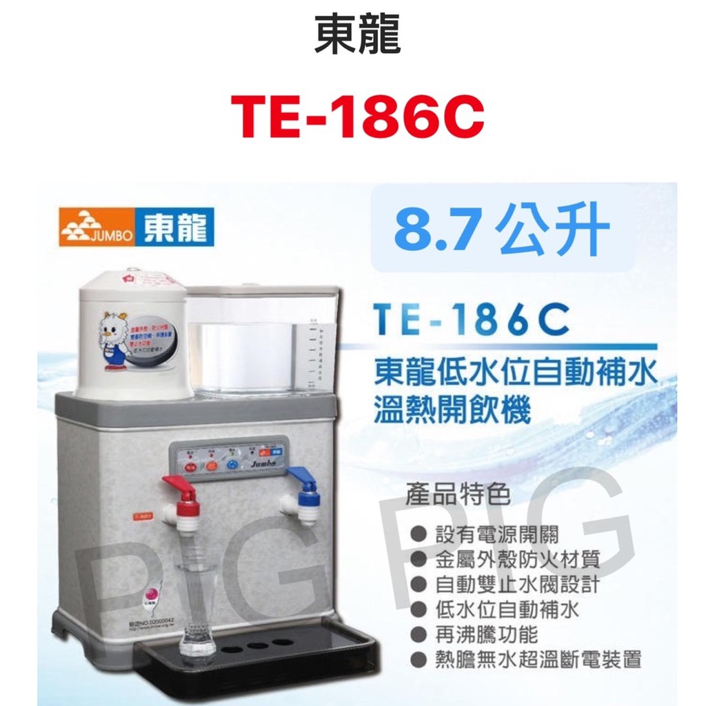 📣 東龍牌 自動補水溫熱開飲機 型號 : TE-186C