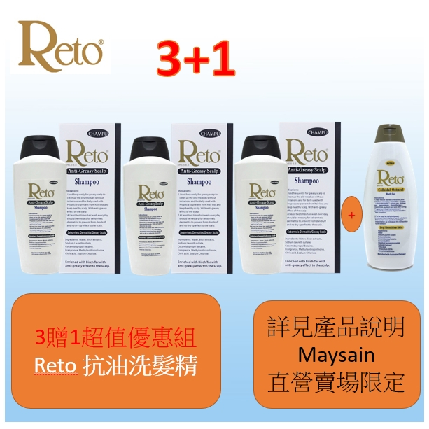 Reto 抗油性頭皮(髮)洗髮精750ml黑盒黑蓋*3贈Reto燕麥膠狀溶液浴液微香720ml