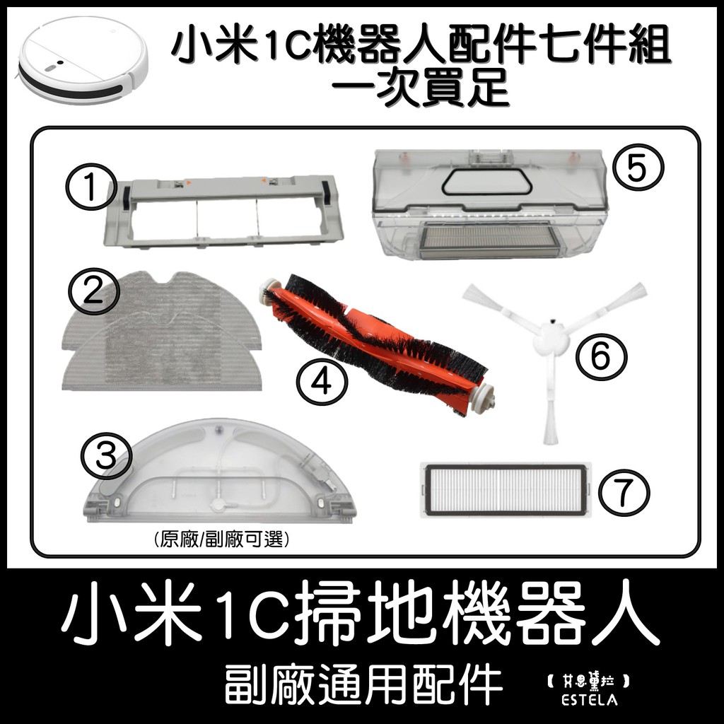 【艾思黛拉】小米 1C 1T 2C 米家 掃拖機器人 掃地機器人 掃地機 配件 耗材 副廠 可拆 主刷 三腳 毛刷 邊