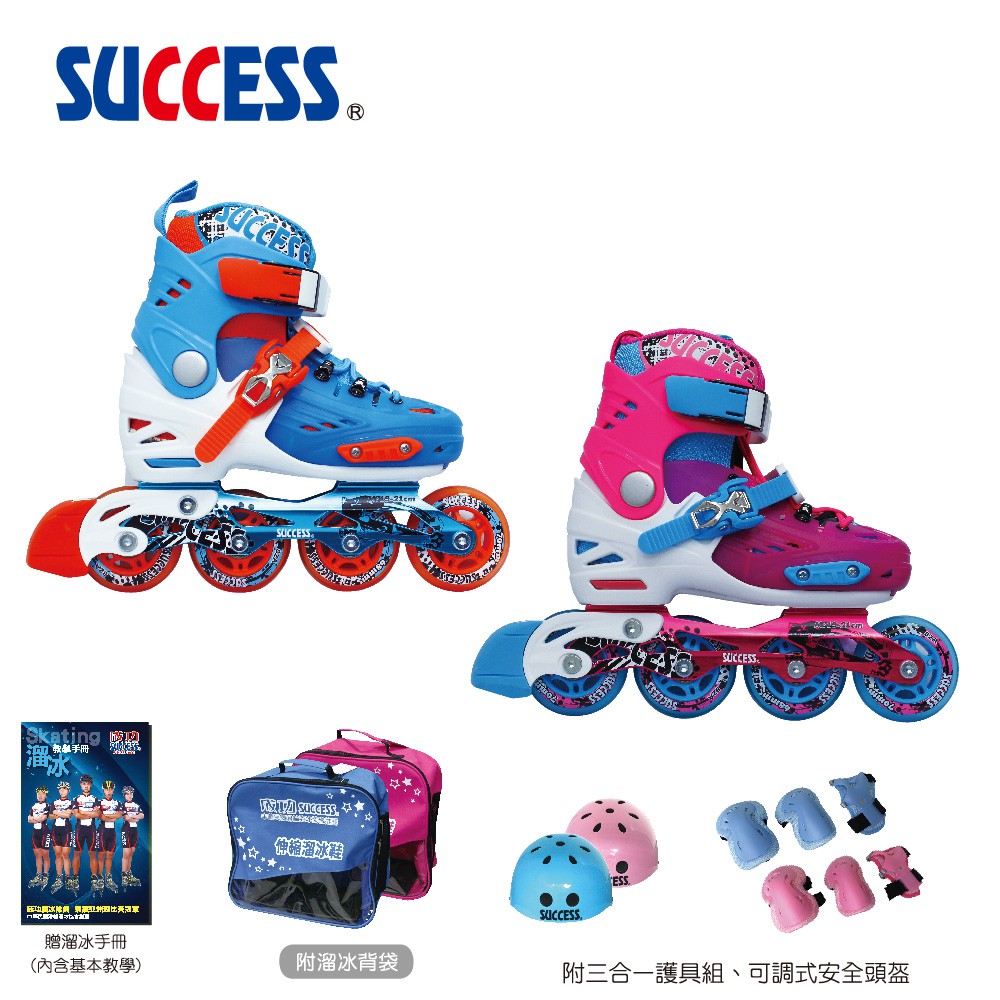 成功 S0410 平花伸縮溜冰鞋組 直排輪 鋁合金底座 含全套護具[砲仔聲同款直排輪]