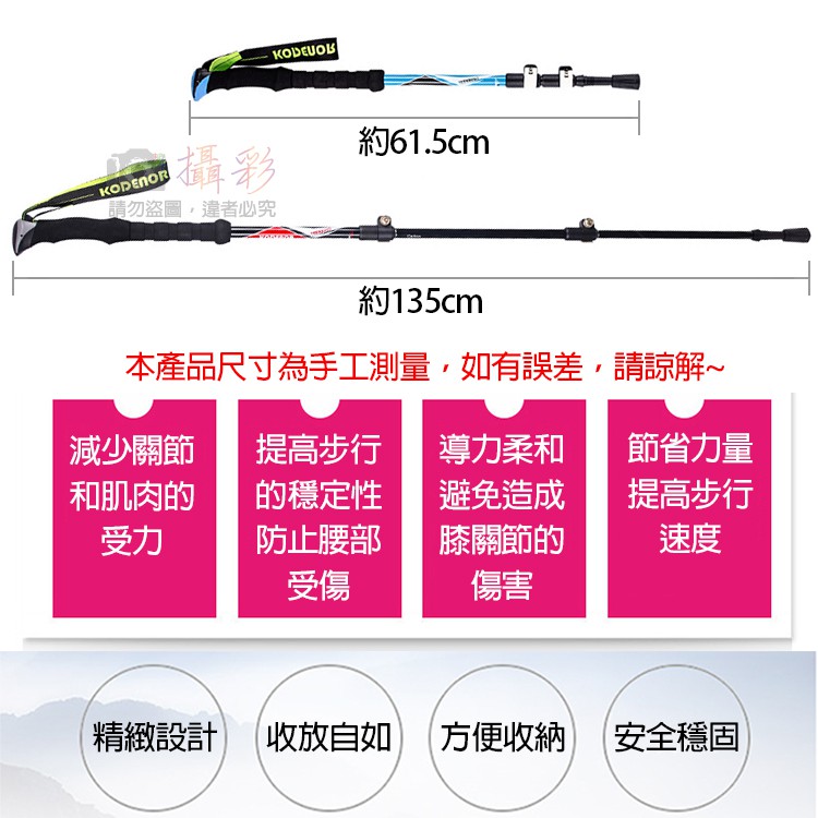 小熊@科德諾雪豹1系碳纖維登山杖 Kodenor 加長握把 附擋泥板 超輕量三節健走杖 戶外健行登山輔助拐杖 外鎖