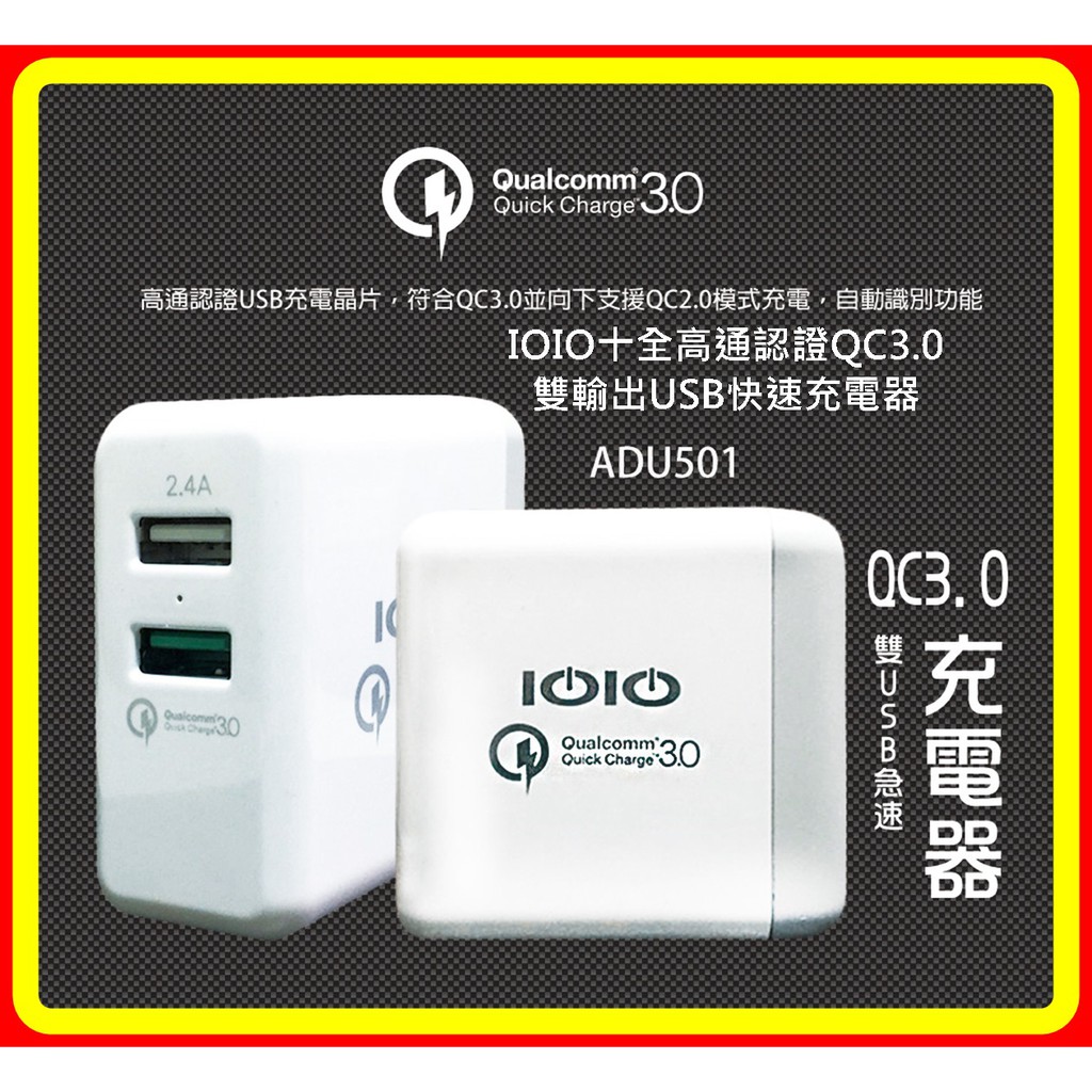 【現貨 含稅】IOIO 十全 高通認證 QC3.0雙輸出USB快速充電器 ADU501