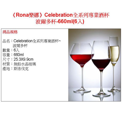 Rona樂娜 / Celebration專業杯系列 / 波爾多杯660ml(6入) RN6272-660