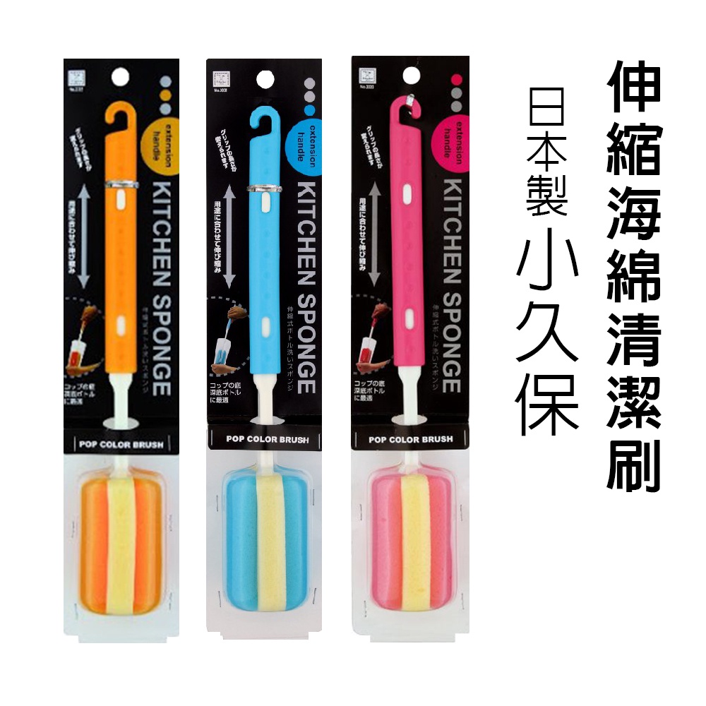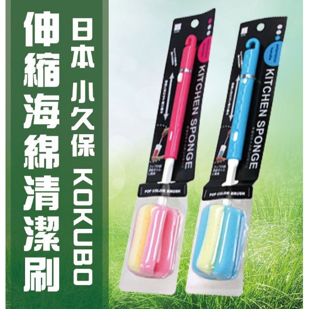 日本 KOKUBO 小久保 伸縮海綿清潔刷 藍 粉 橘 保溫瓶刷 奶瓶刷 杯子刷具 伸縮刷具 28.5CM