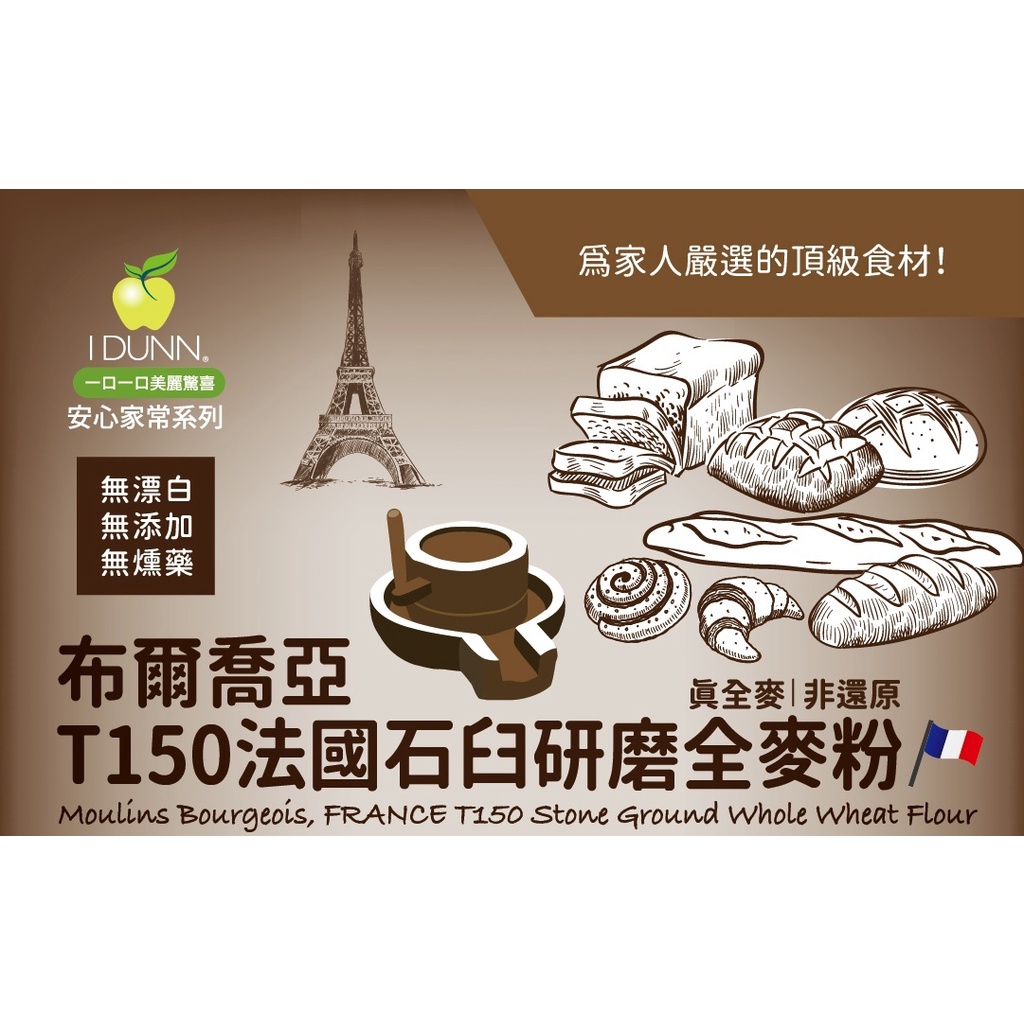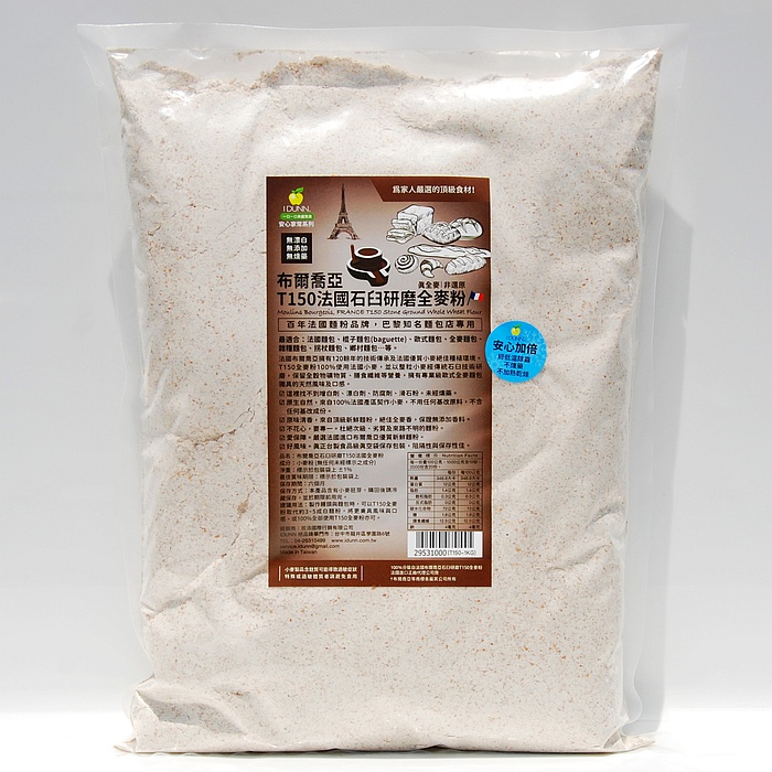 T150石臼石磨全麥粉1.5KG平袋裝法國布爾喬亞Moulins Bourgeois,真全麥麵粉麵包機可用IDUNN