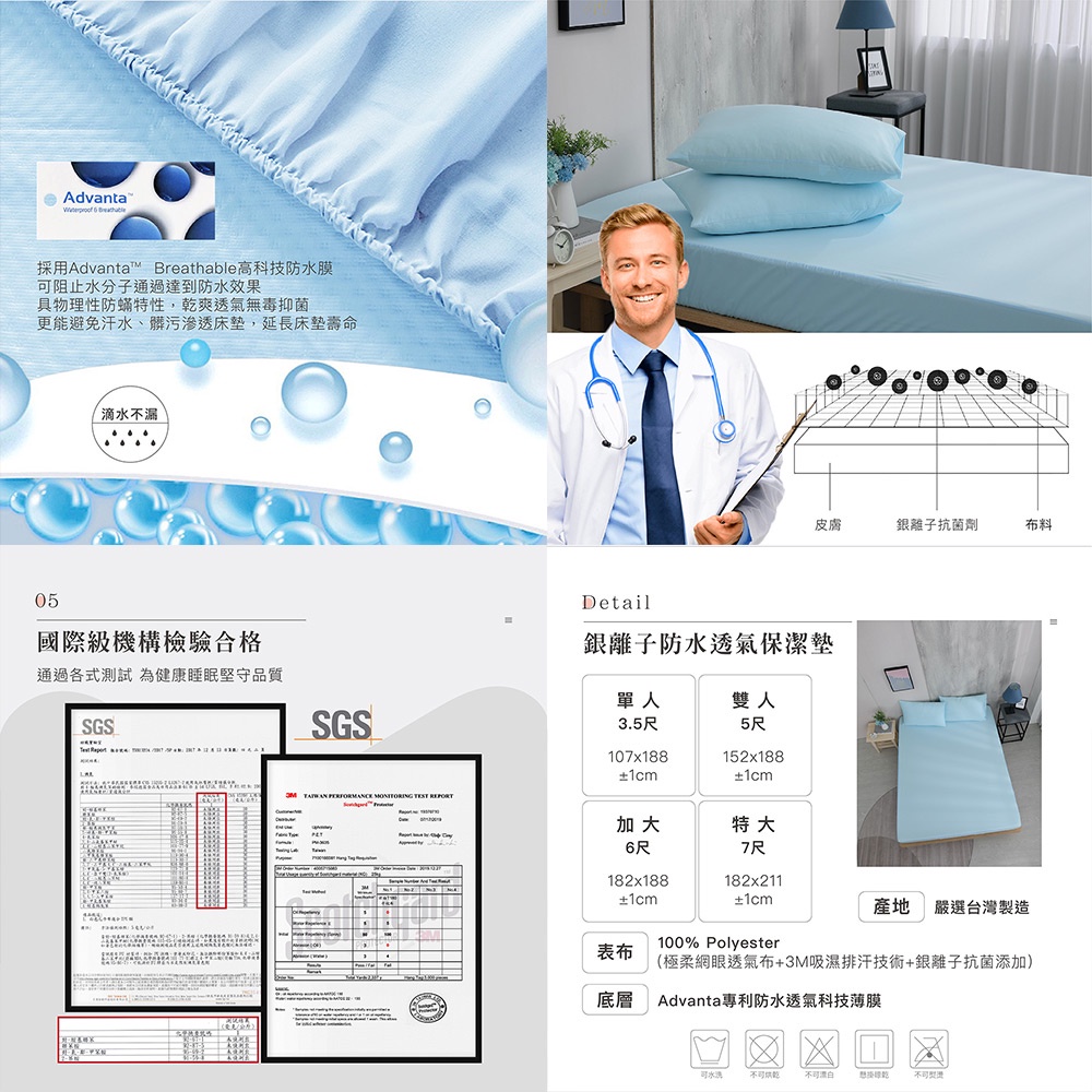 【BEST寢飾】100%防水保潔墊 銀離子抗菌 單人 雙人 加大 特大 加高35公分 台灣製 3M吸濕排汗技術 防水床包