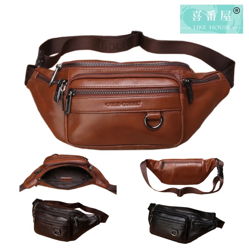 【喜番屋】頭層牛皮男士肩背胸包【LB786】真皮 肩背包 斜肩包 男包