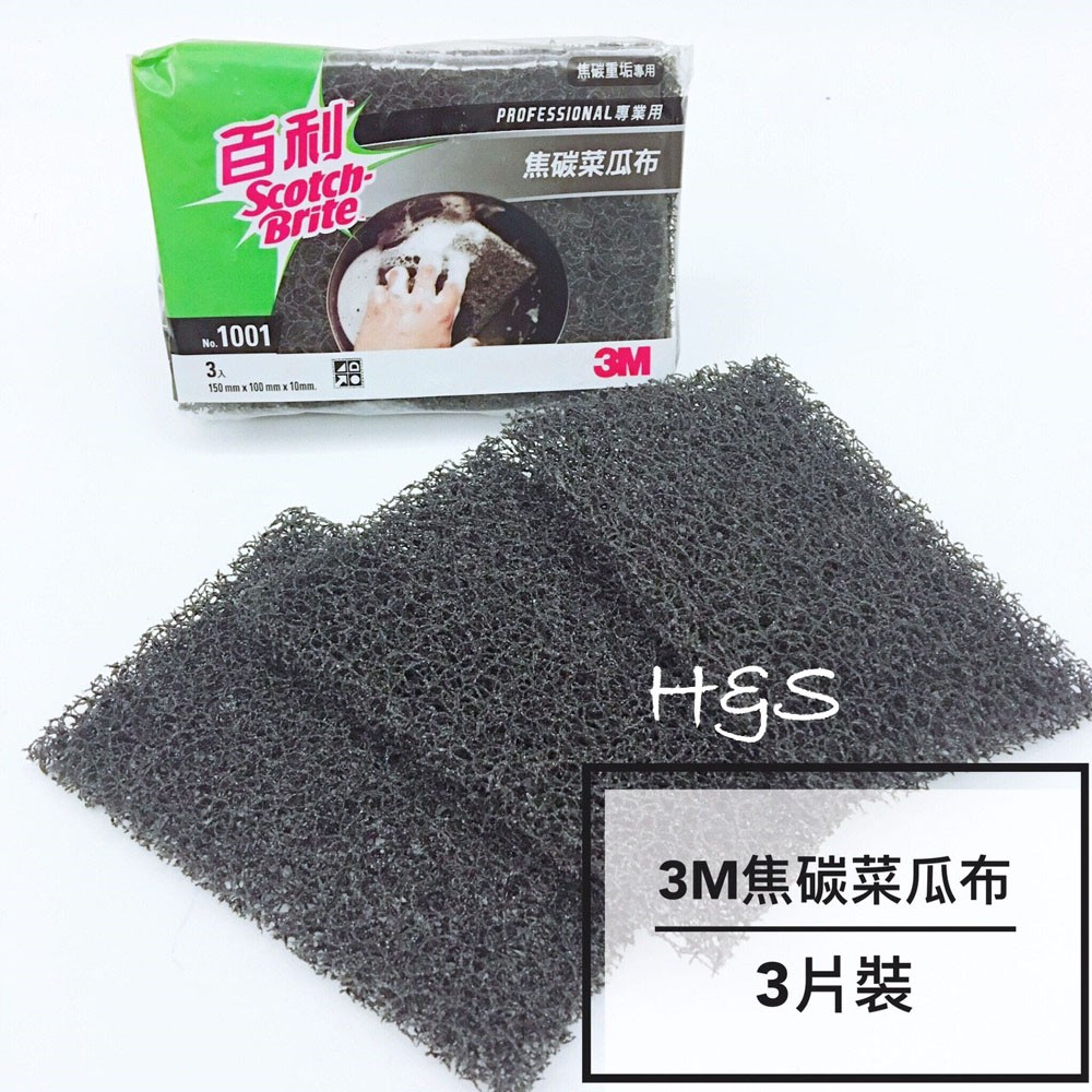 3M焦碳菜瓜布3入15*10*1cm 百利 焦碳重垢專用 3M菜瓜布 焦炭 廚房 鍋具 廚具清潔 油煙機 H&S樂購百貨
