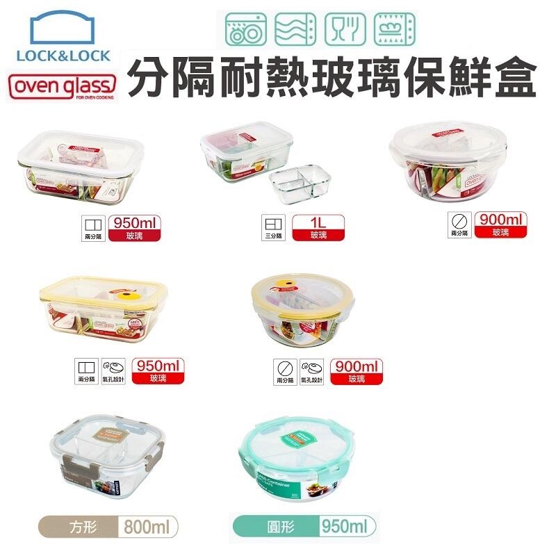 LOCK&LOCK樂扣樂扣耐熱分隔玻璃保鮮盒圓形/長方形 微波分隔保鮮盒 分隔便當盒 焗烤盒 樂扣輕鬆熱分隔