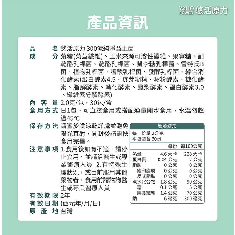 悠活原力300億純淨益生菌(30條/盒) 7種益生菌 X 3種益菌生 X 8種綜合酵素 台灣公司貨