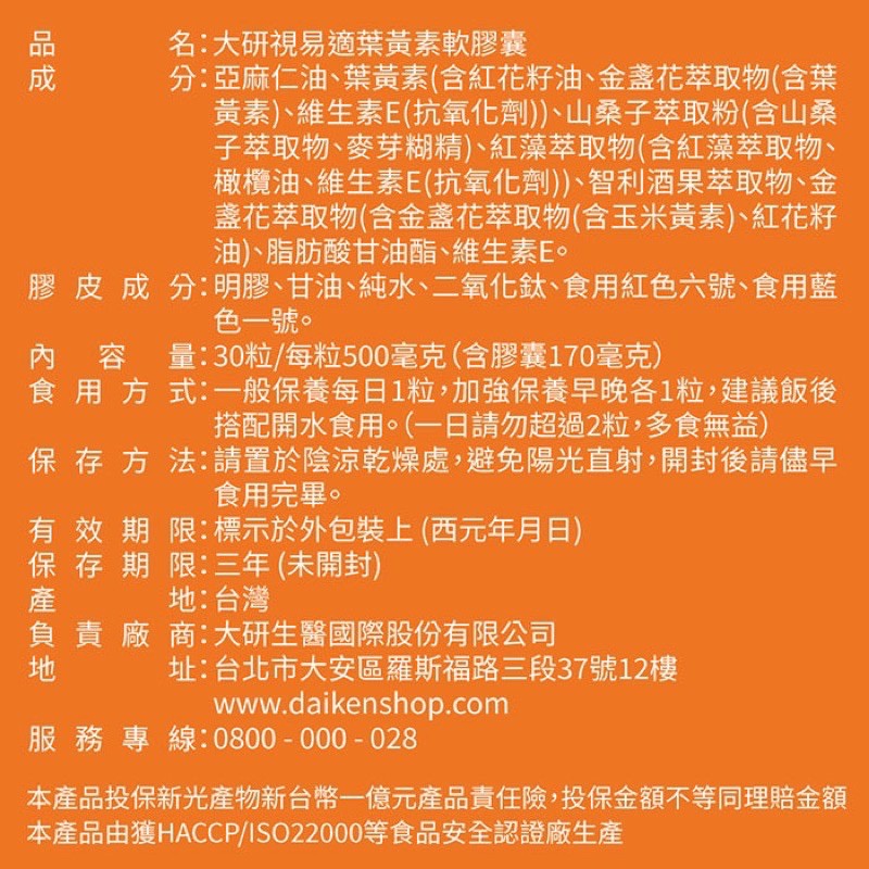 【大研生醫】視易適葉黃素軟膠囊 (30粒/盒)