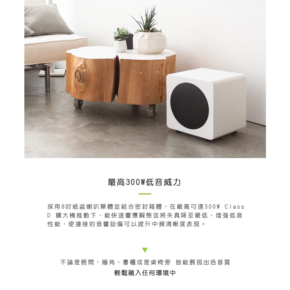 【Kanto 台灣】SUB8 重低音喇叭-白色/RCA輸入/可接主動式喇叭、綜合擴大機、多通道接收器