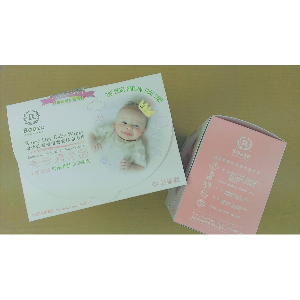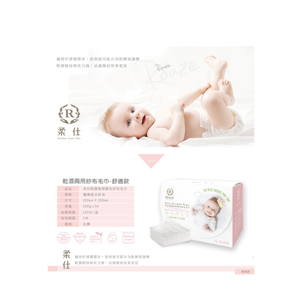 柔仕Roaze 乾濕兩用嬰兒紗布毛巾(舒適款) 160抽【每人限購4盒】