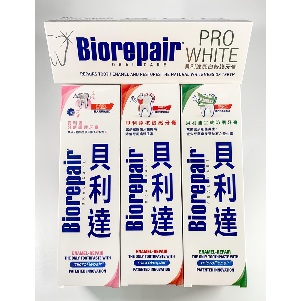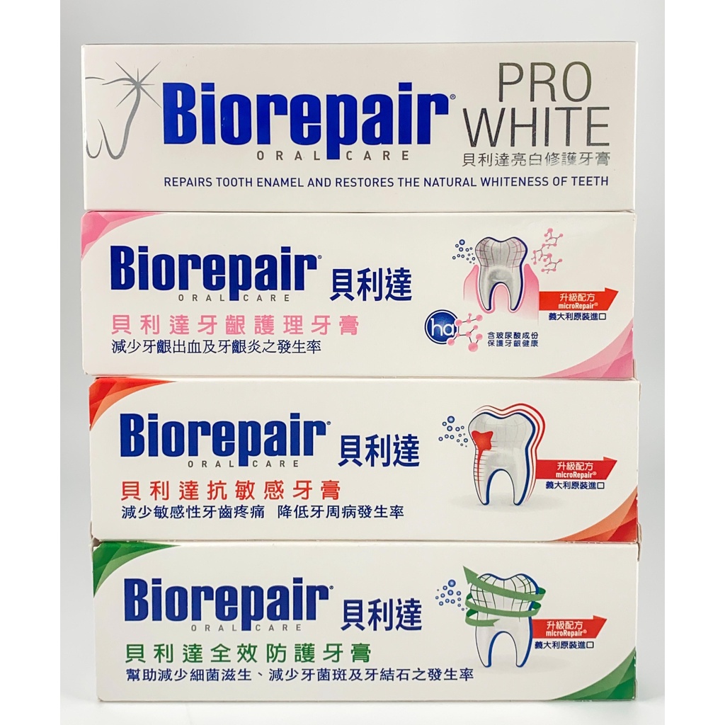 【保證台灣代理公司貨🧾電子發票】 Biorepair貝利達 益生菌/抗敏感/牙齦護理/全效防護/亮白修護 牙膏 75ml