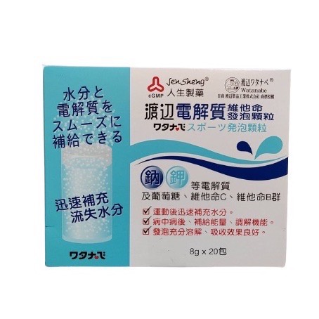 ☆☆環球大藥局 ☆人生製藥渡邊元氣能量C發泡顆粒C+B群+鋅/電解質維他命發泡顆粒10g*20包/盒 特價 全新效期
