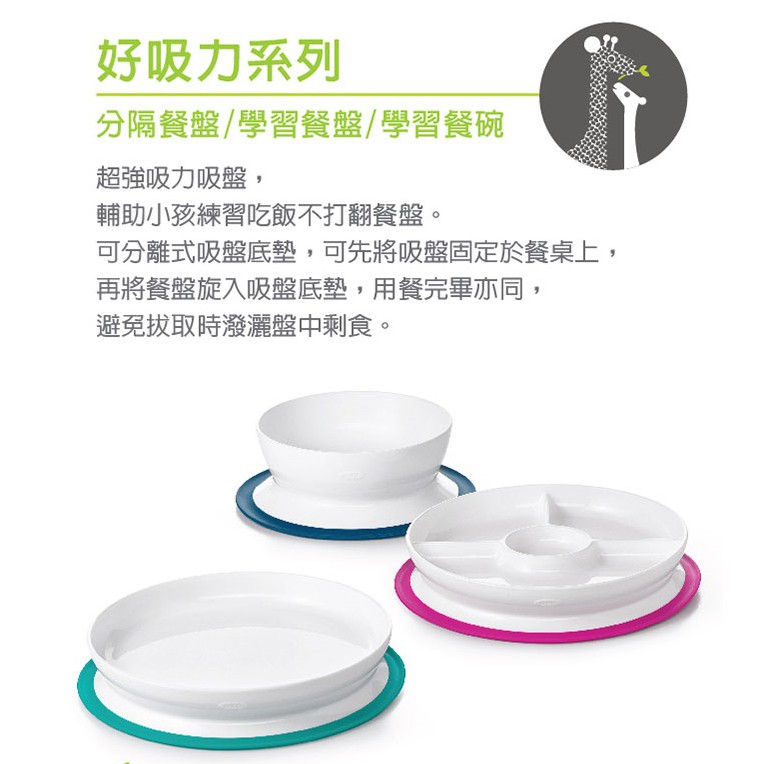★下單贈濕巾299加贈電池★OXO tot 好吸力分隔餐盤 四色可選 公司貨海軍藍/莓果粉/靓藍綠/大象灰