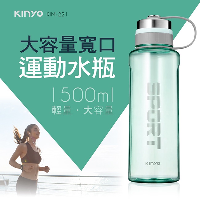 含稅原廠保固一年KINYO輕量級防漏大口徑1.5升耐摔手提水瓶運動瓶(KIM-221)