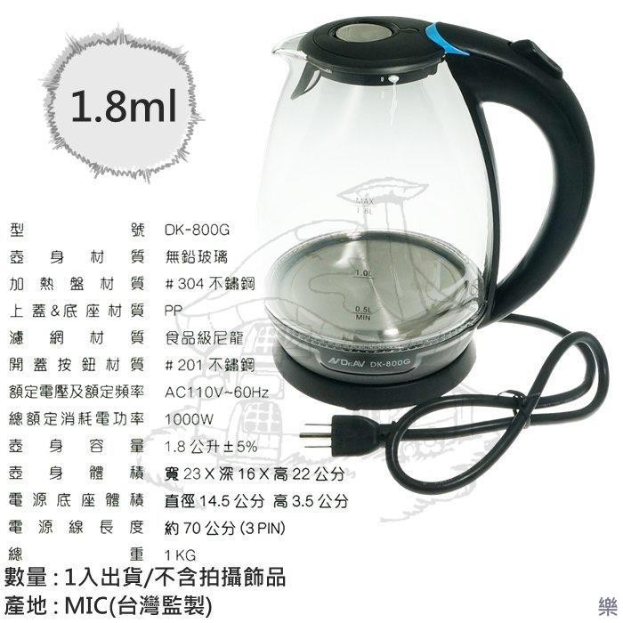 DK800G 藍光玻璃快煮壺1.8L 熱水壺 玻璃壺