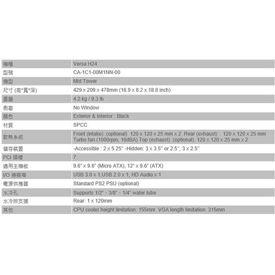 【MR3C】含稅附發票 Thermaltake曜越 Versa H24 USB3.0 中直立式機殼(只適用宅配)