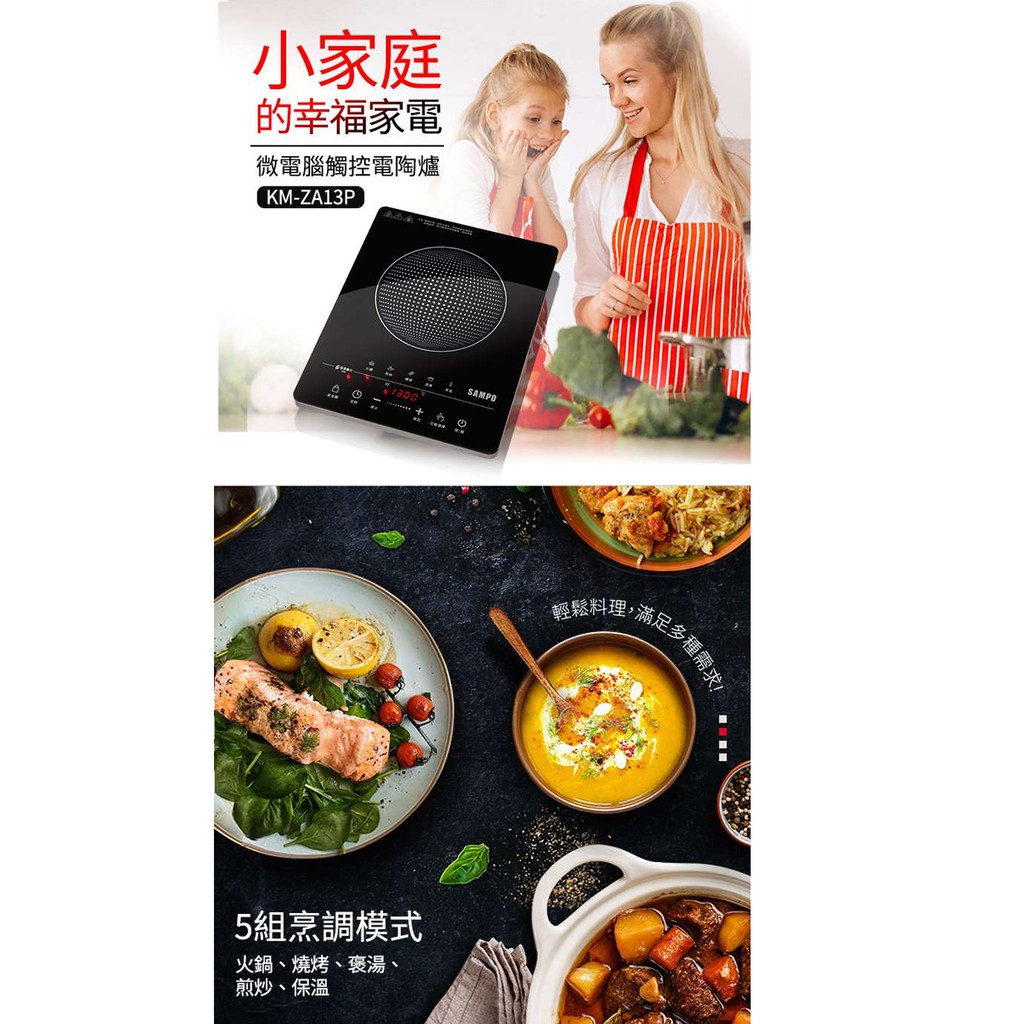 SAMPO聲寶 微電腦觸控不挑鍋黑晶電陶爐 KM-ZA13P