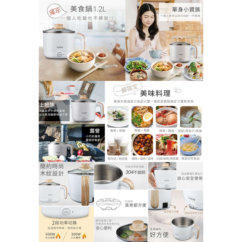 SAMPO聲寶 1.2L雙層防燙美食鍋 KQ-CA12D