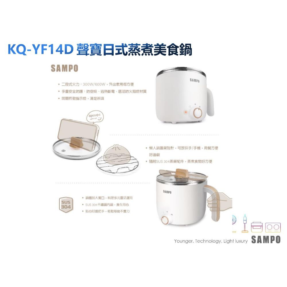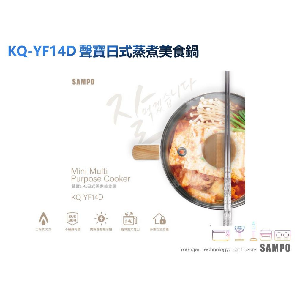 SAMPO聲寶 1.4L日式蒸煮美食鍋 (KQ-YF14D) 現貨 廠商直送