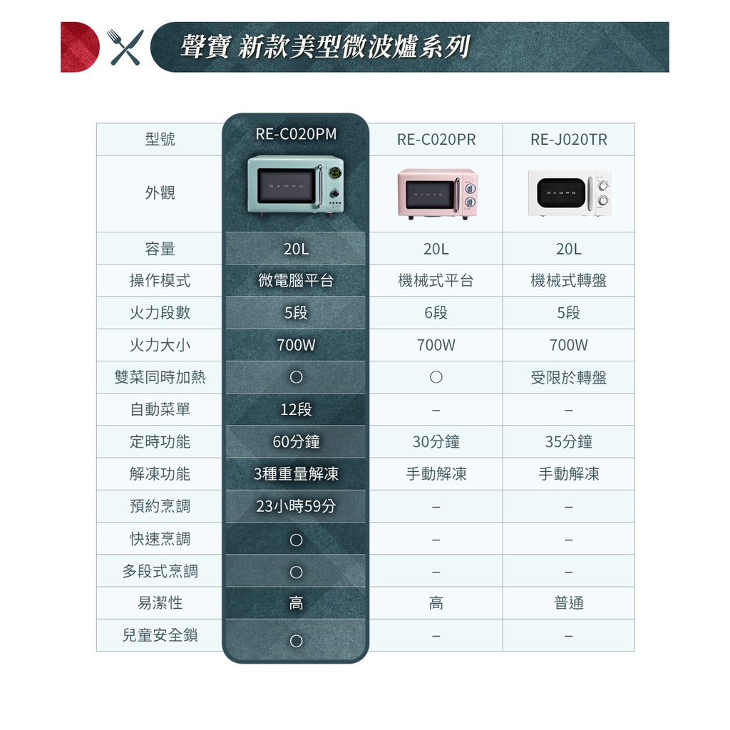 SAMPO聲寶 天廚20L微電腦平台式經典美型微波爐 RE-C020PM