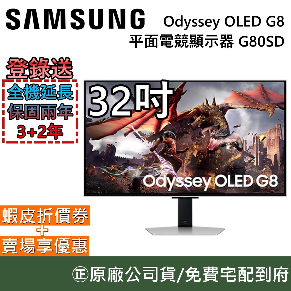 SAMSUNG 三星 S32DG802SC【領券再折+延長保固】32吋 Odyssey OLED G8 平面電競螢幕