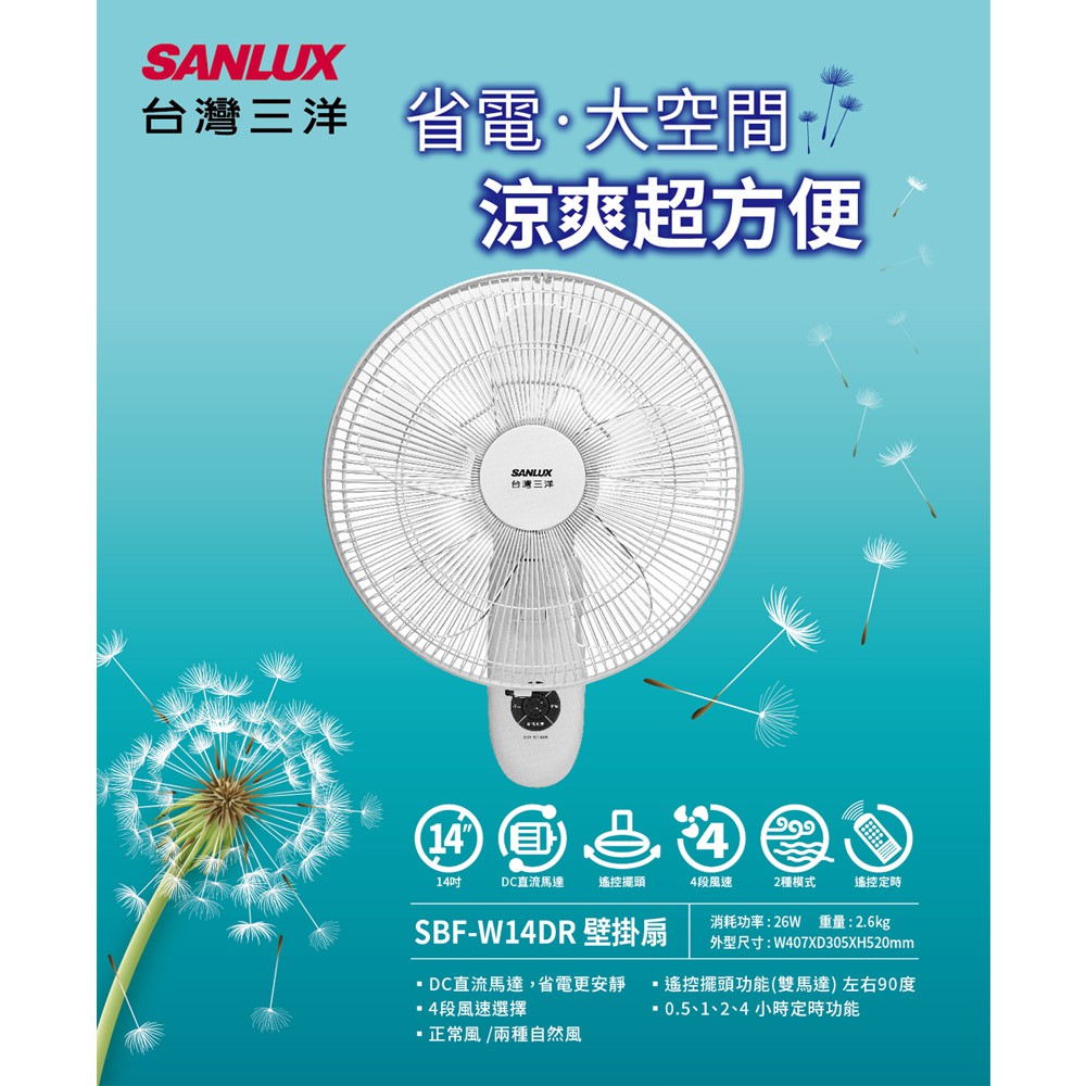 SANLUX 台灣三洋 14吋 DC壁掛扇 SBF-W14DR 現貨 廠商直送