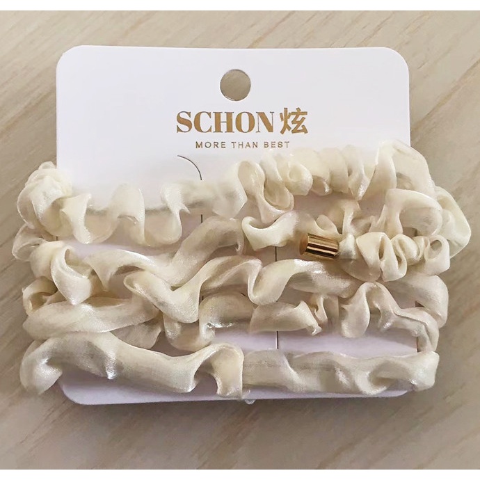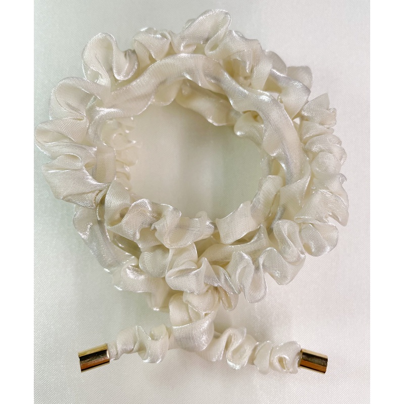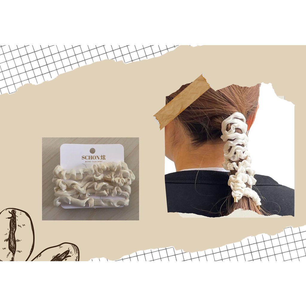 SCHÖN日本紗質髮繩-米白 春夏最新 亮面雪紡 紗質 日本同步販售 簡約 時尚 髮繩 綁髮造型 不咬髮 流行 日本同步