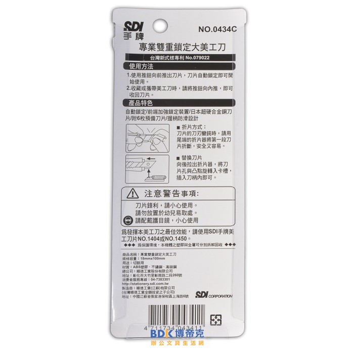 SDI 手牌 專業雙重鎖定大美工刀 0434C 系列