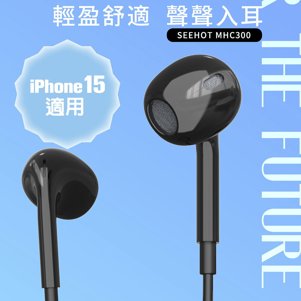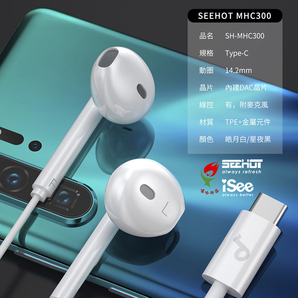 SEEHOT Type C手機專用通話及音樂耳麥-黑/白【九乘九文具】線控耳機 入耳式耳機 Type C耳機 有線耳機