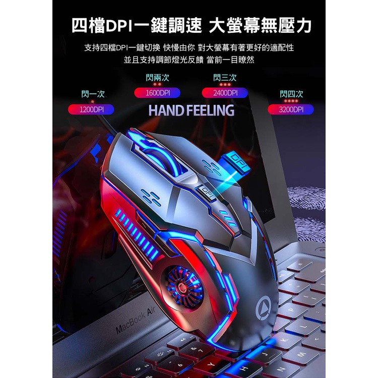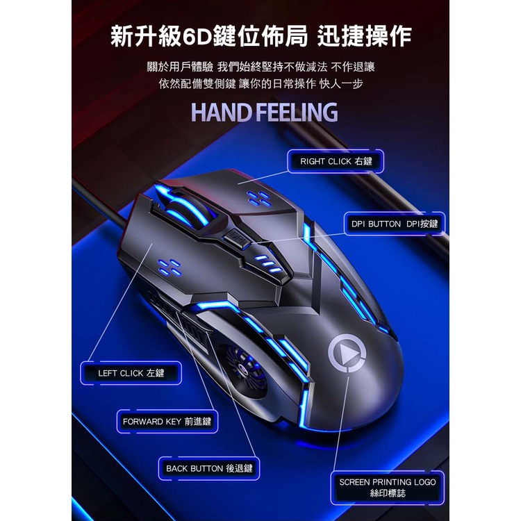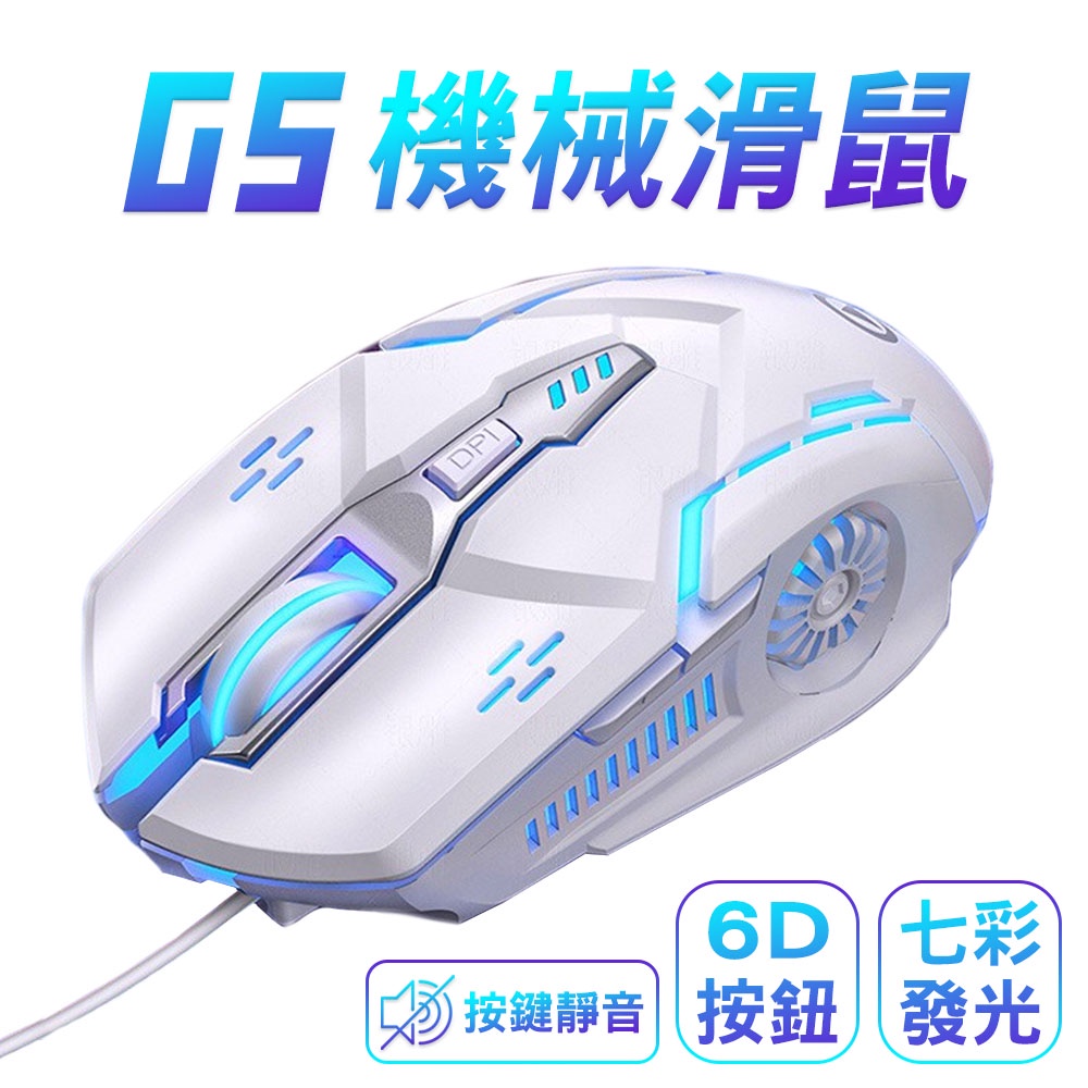 SHOWHAN G5 電競滑鼠 有線滑鼠 六鍵七彩發光呼吸燈 靜音 辦公滑鼠 文書滑鼠 筆電滑鼠