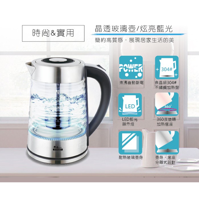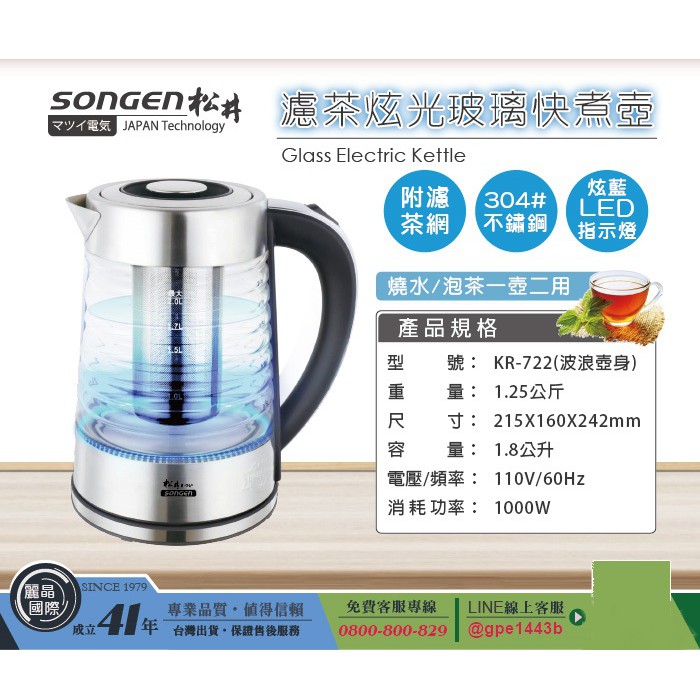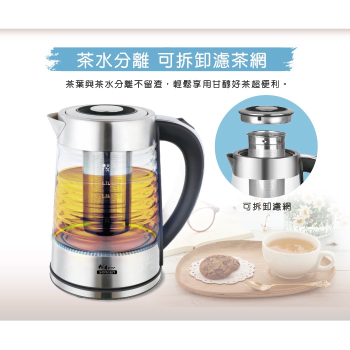 SONGEN松井 濾茶炫光玻璃快煮壺/電水壺/泡茶機(波浪壺身款)SG-722(免運)【聖家家電舘】