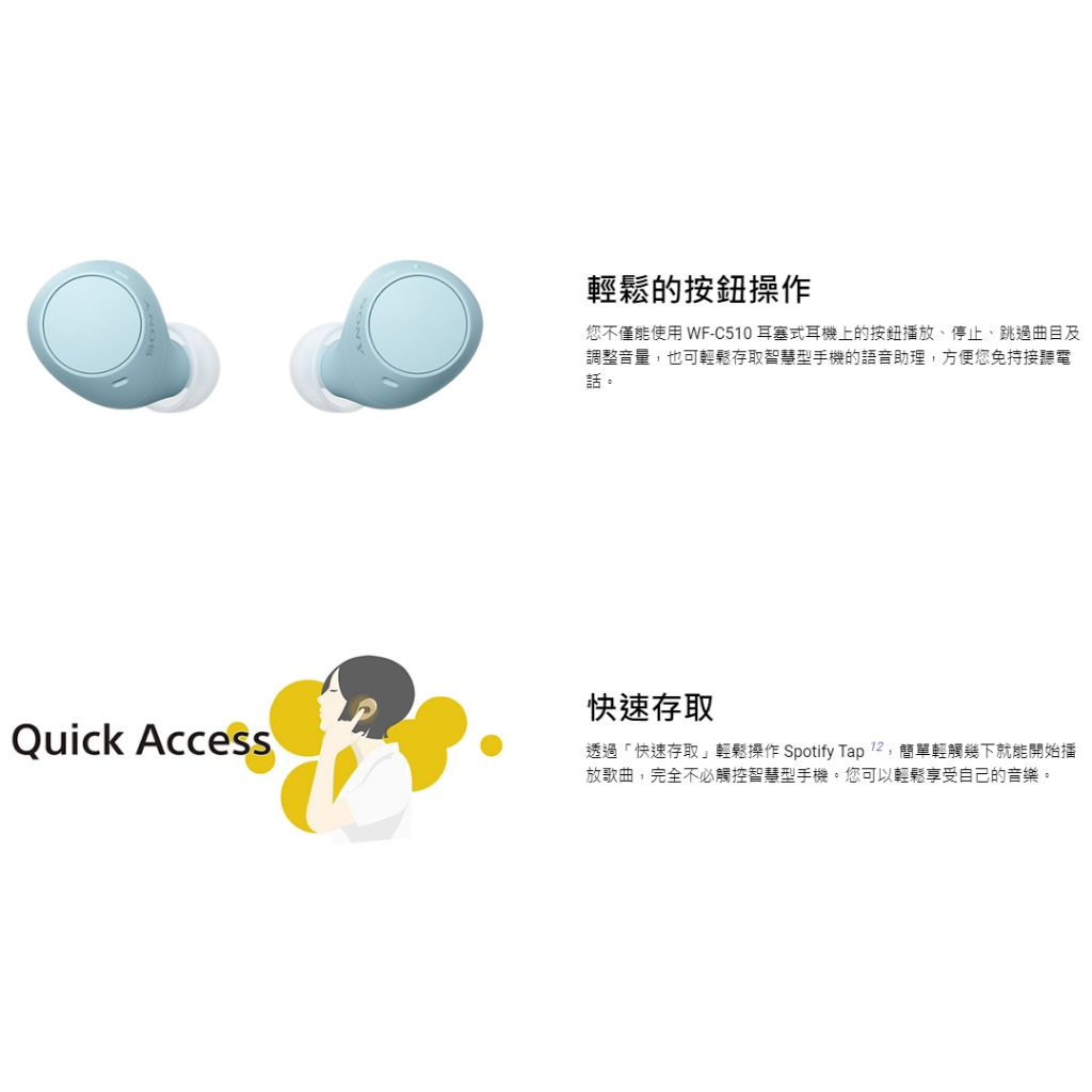 SONY索尼 WF-C510 【領券-200+蝦皮優惠券】真無線藍牙耳機 公司貨 保固一年