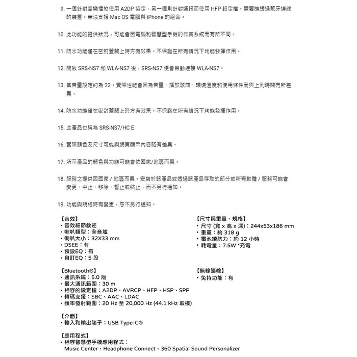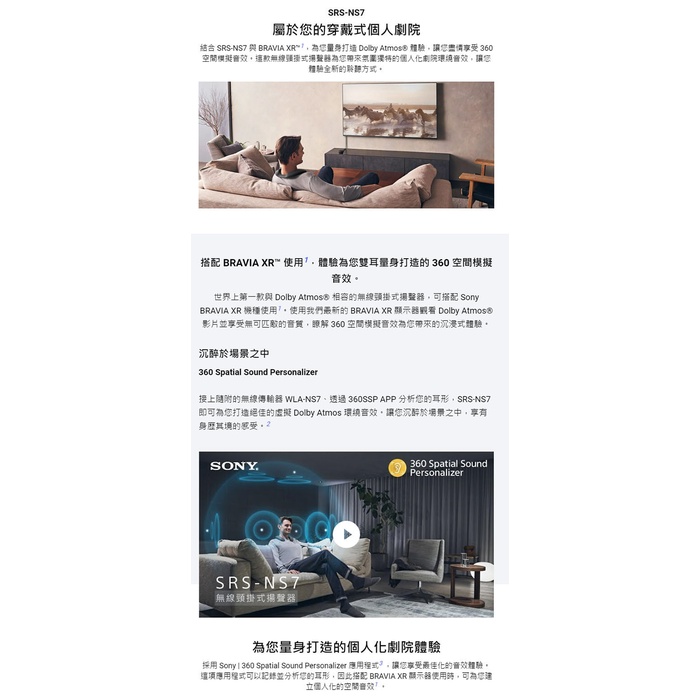 SONY SRS-NS7 無線頸掛式揚聲器 Neckband speaker 藍牙揚聲器 頸掛式揚聲器 杜比全景聲