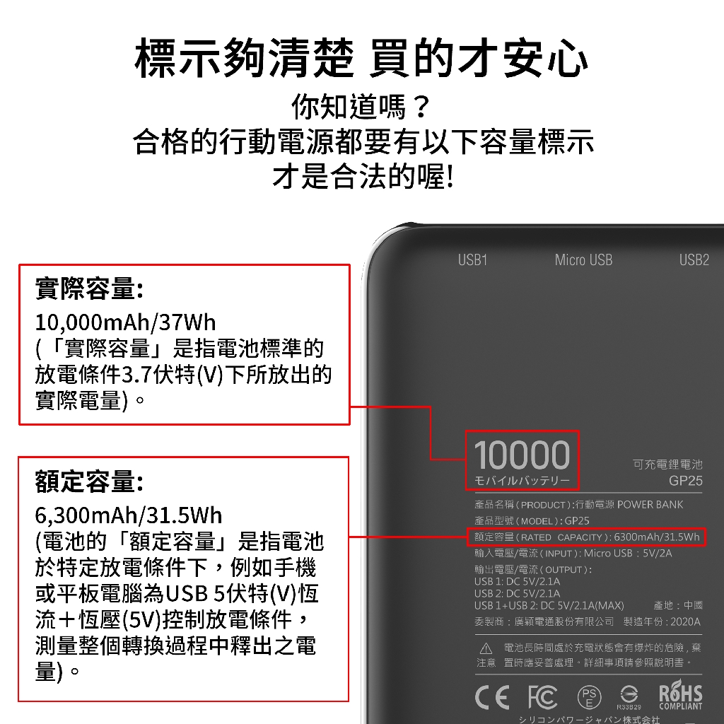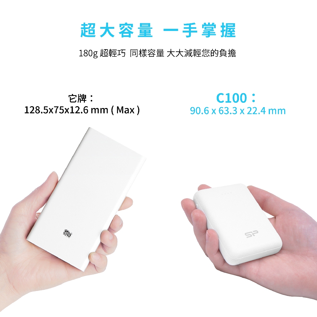 【有標示Wh】SP C100 10000mAh 行動電源 白 黑 USB 雙充電口 BSMI認證 13月保固 廣穎