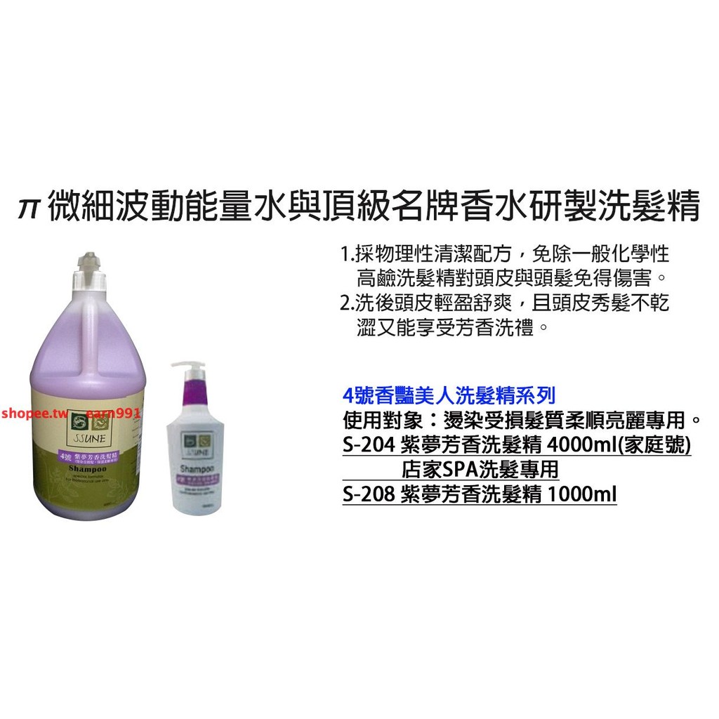 SSUNE 尚億 4號 紫夢芳香洗髮精 (保濕滋潤) 護色保水 4000ML(家庭號)(有現貨可超取)