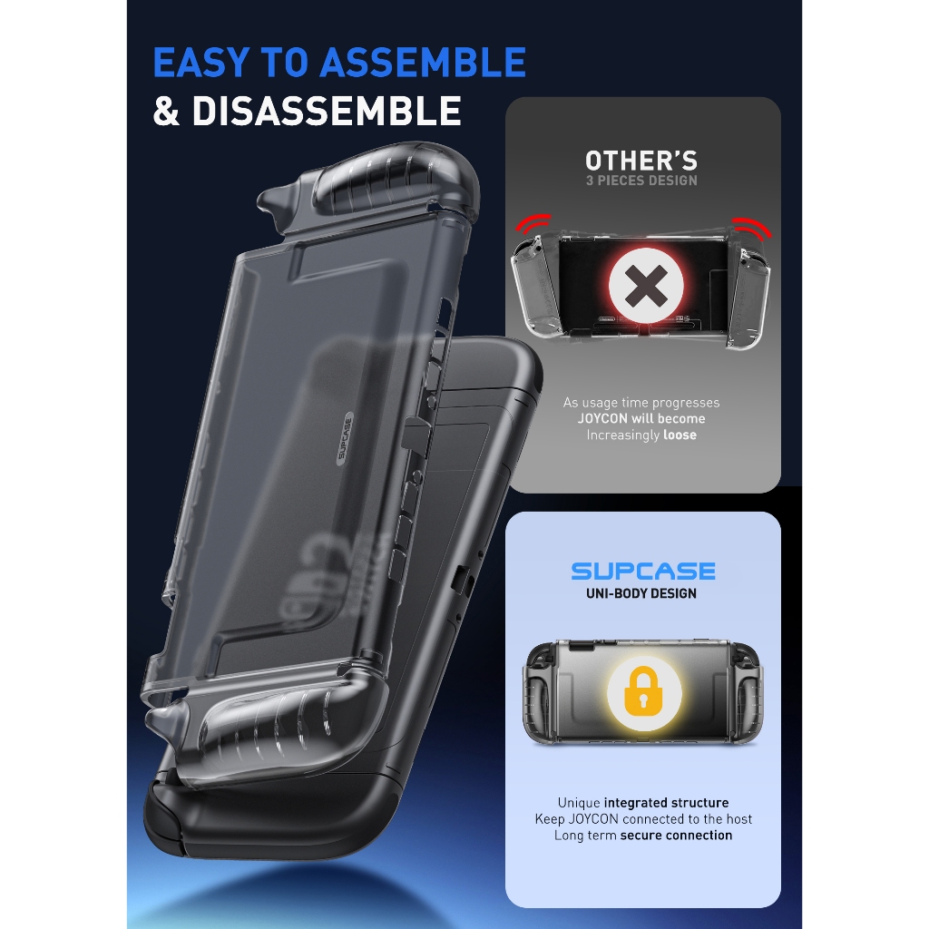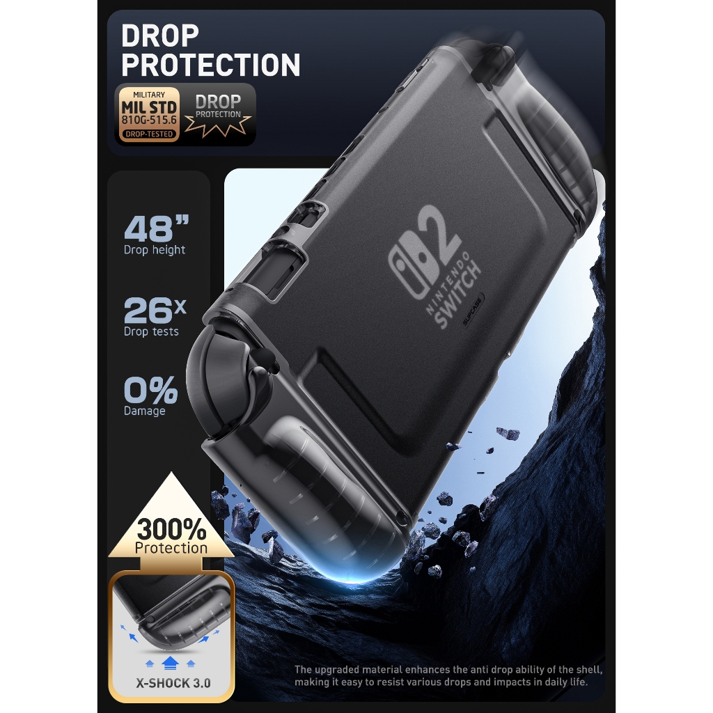 SUPCASE 透明保護殼適用於 任天堂 Switch 2 可快速拆卸Joy Con TPU握把支持帶殼Dock防摔防震