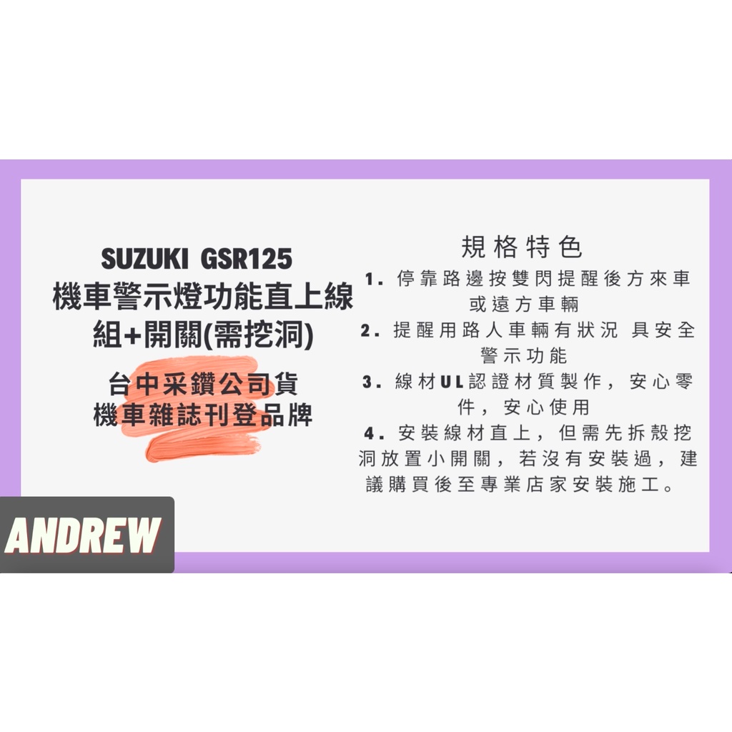 SUZUKI GSR125機車警示燈功能線組+開關 按雙閃提醒後方來車 警示功能 與汽車相同概念 采鑽公司貨