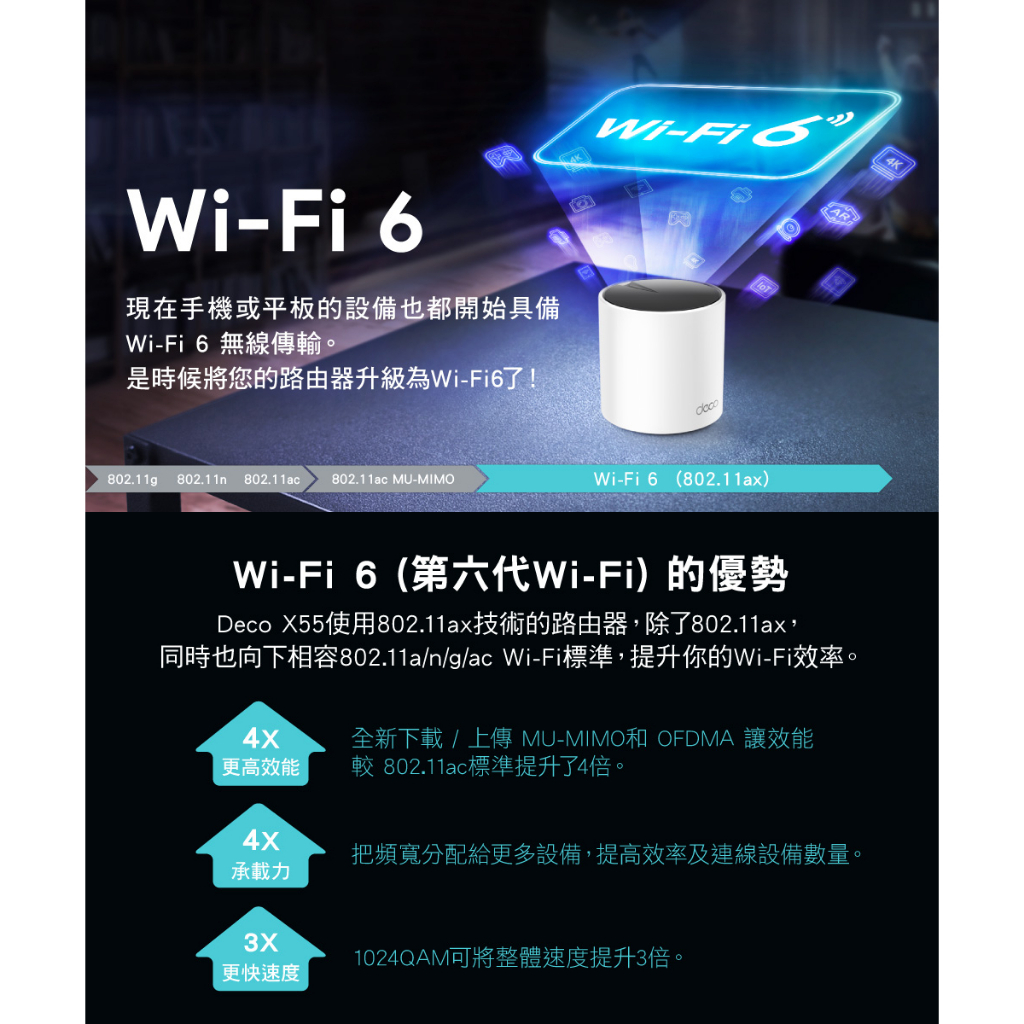 TP-Link Deco X55 AX3000 wifi 分享器 wifi6 真Mesh雙頻無線網路 路由器 大坪數專用