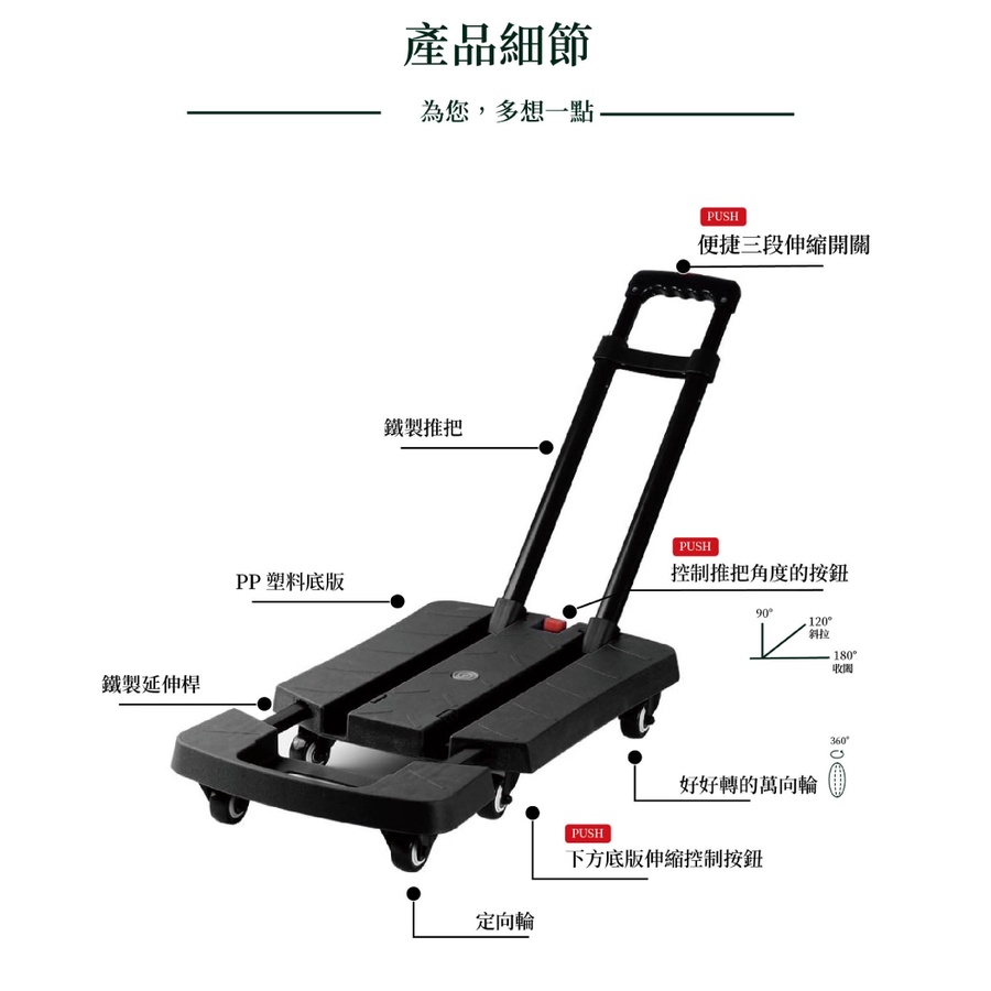 日本星 LU-006 可伸縮六輪輕便小推車 靜止載重兩百公斤 網拍搬家辦公室都適用 200kg 螢宇五金
