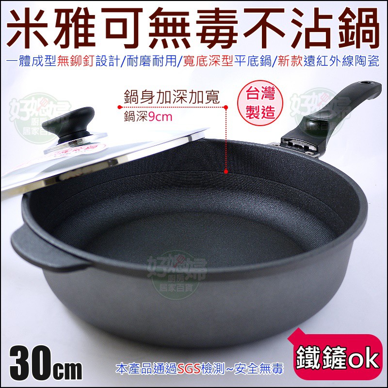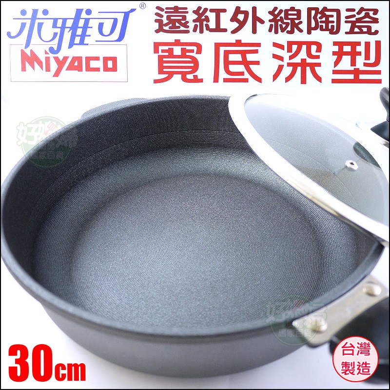 《好媳婦》Miyaco【最新!米雅可遠紅外線陶瓷平底鍋30cm寬底深型長壽無毒不沾鍋】平煎鍋/鐵鏟ok/鐵板燒/無鉚釘